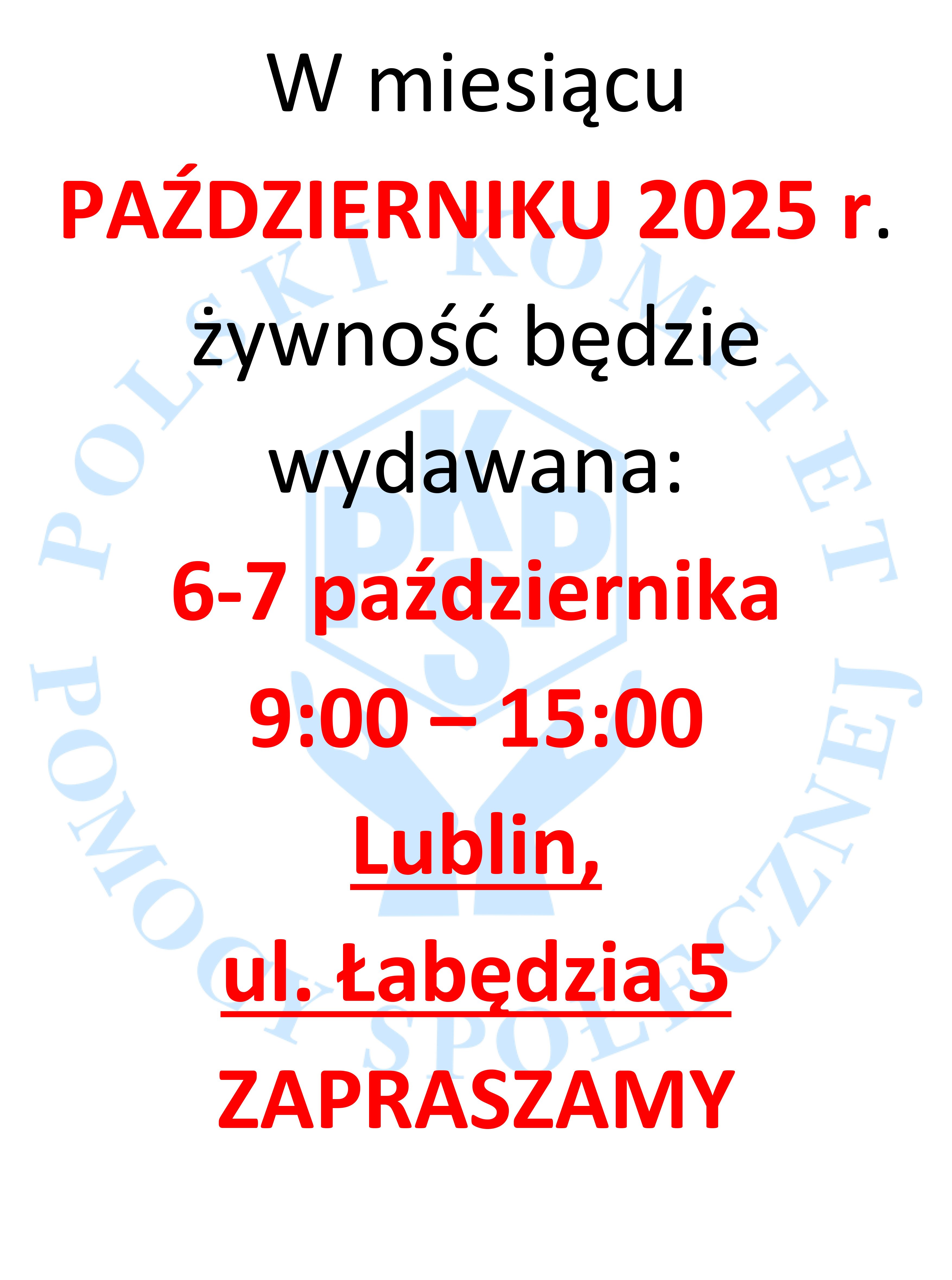 Już w najbliższy poniedziałek i wtorek tj. 6-7 października 2025 r. zapraszamy do naszego punktu pomocy przy ul. Łabędziej 5 w Lublinie w godzinach 9:00 - 15:00.